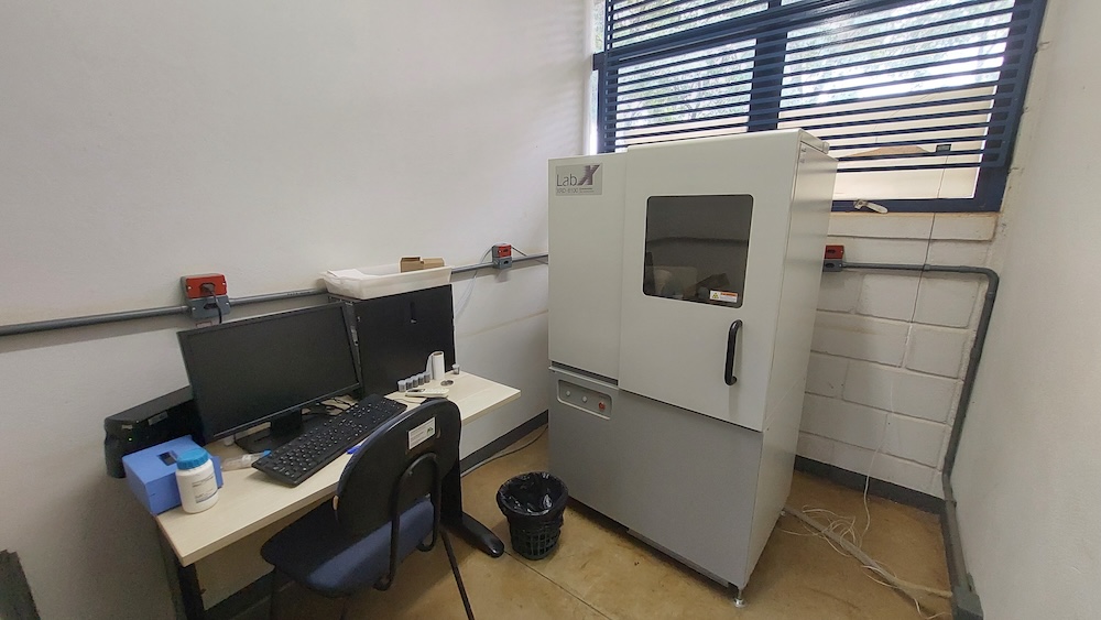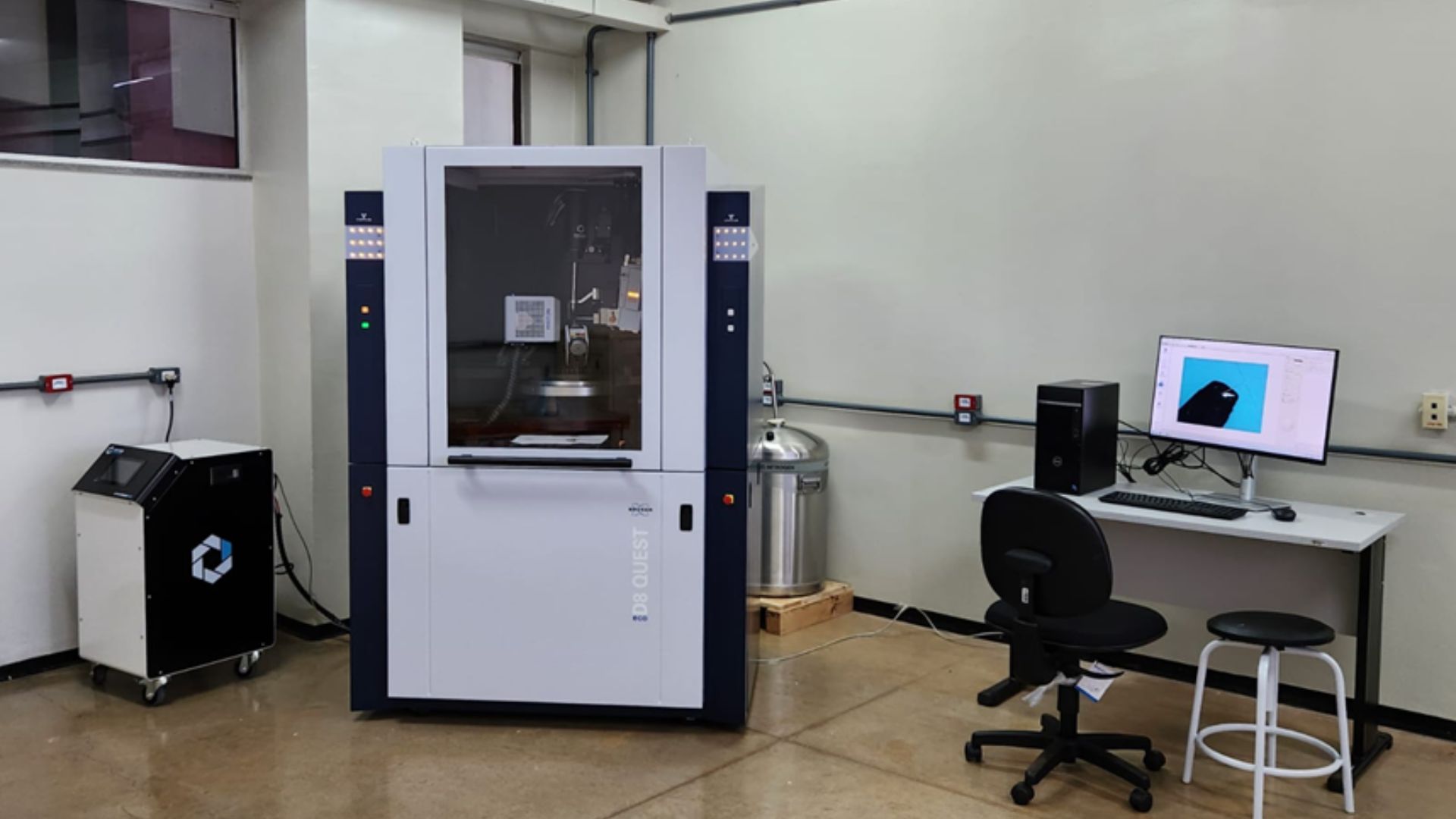 Instrumento utilizado para determinar a estrutura cristalina de materiais por meio da difração de raios-X. Aplicações: Identificação e quantificação de fases cristalinas, quantificação de soluções sólidas, larga câmara de análise de amostras (300x150mm), análise de estrutura cristalina, microtensões e tamanho de cristais, percentagem de cristalinidade, análise de filmes finos, orientação de fibras e polímeros, análise de tensões residuais, não-ambiental, de austenita retida e de figura de polo.